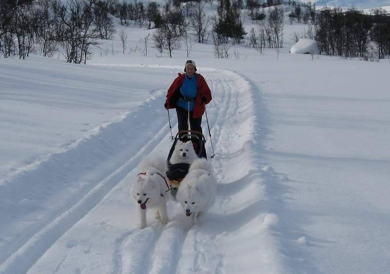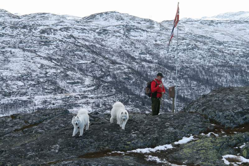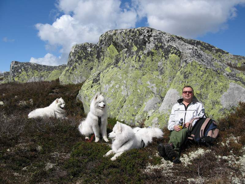 Eldbjørg, Gro og Geir + firbente var på tur på bena i all