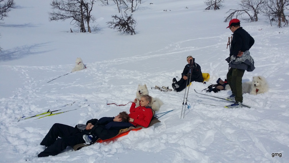 Hyggelig tur i vårværet med Sissel, Mari, jeg og alle firbente 1 |