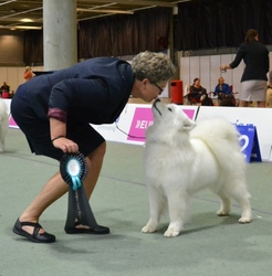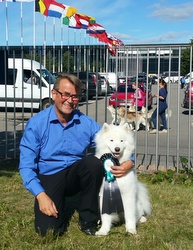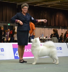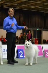dommer Franjo Kovacev fra Kroatia som selv driver med samojed. Gabby